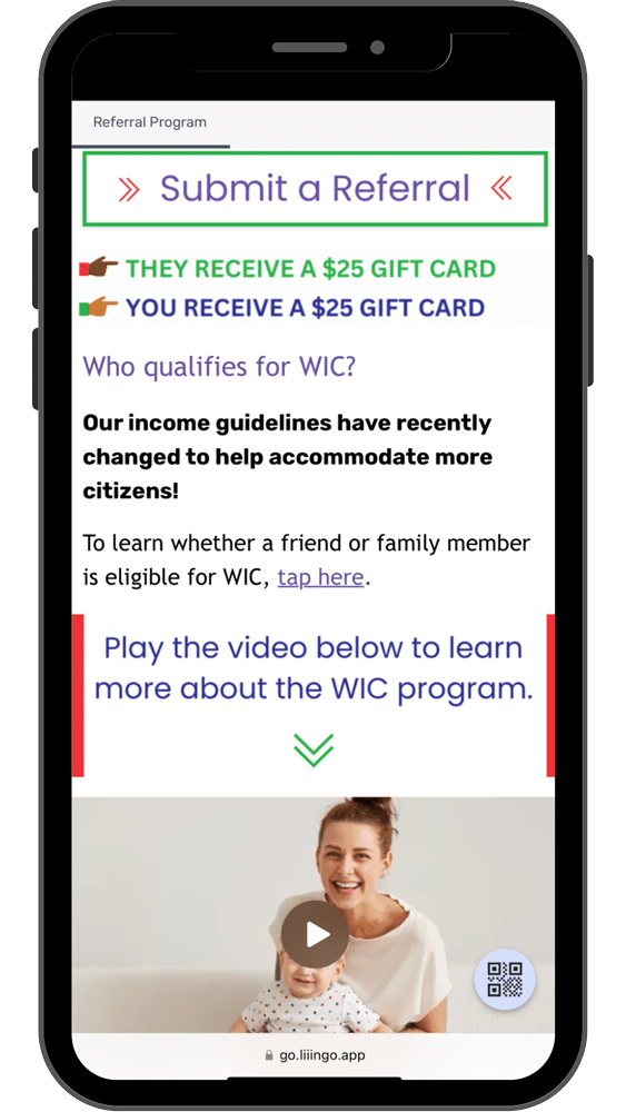 To ensure accessibility and ease of use, we developed a mobile-optimized landing page that automatically detected the language setting on the user’s device and provided content in that language. In addition to allowing users to easily complete the WIC referral form, the page also provided educational information on the services provided by WIC, making it easy for participants to share the content with those they were referring. Accessible via QR code or text link, the page offered a convenient, seamless experience, encouraging participants to take action and refer those who could benefit from the WIC services.