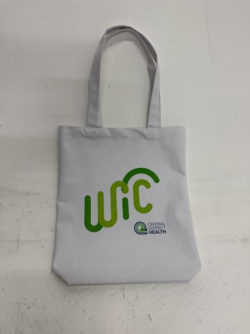 To further promote the WIC program, we designed and ordered branded merchandise featuring both the client’s branding, Central District Health, and the WIC program logo. The items, including tote bags, drawstring bags, stickers, and car sunshades, were chosen for their practicality and functionality. These items not only served as useful giveaways but also helped reinforce the campaign’s visibility. The stickers, in particular, were designed to be fun and engaging. These merchandise items were distributed by CDH at various tabling events, to both potential and current WIC members.